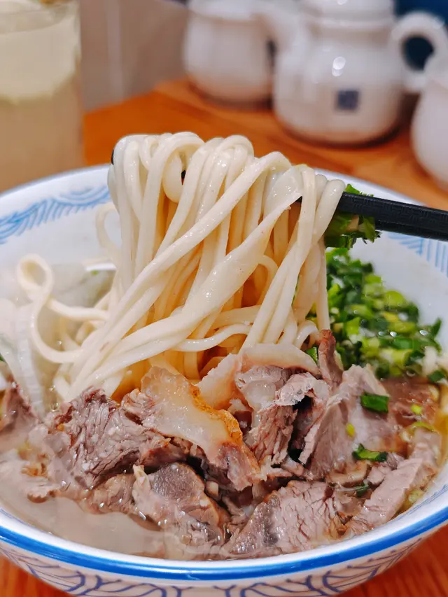 麵條更加係亮點,店家有8款粗幼選擇,我揀咗二細麵,Q彈有咬口,吸晒湯底嘅精華,牛腱子切成大片,厚薄啱啱好,保留咗原切牛展肉嘅筋膜,口感好豐富,嫩得嚟又有嚼勁,入口超入味。