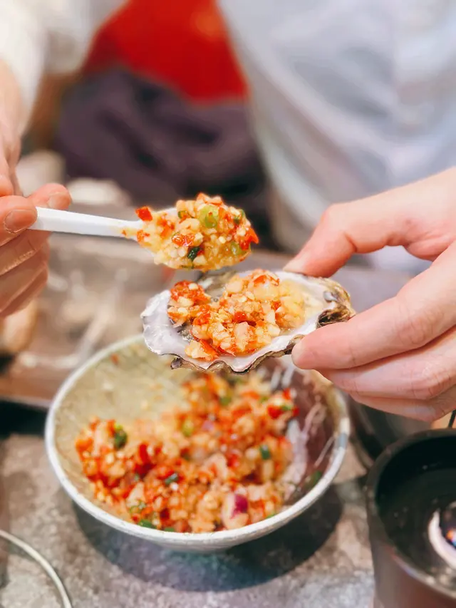 我哋重自製咗個辣椒蒜蓉醬黎燒生蠔