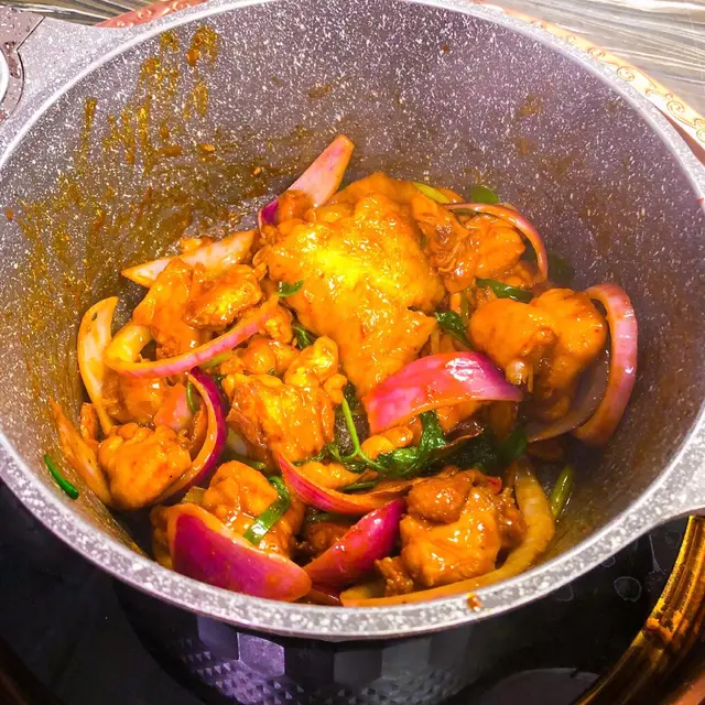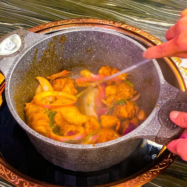 雞煲有驚喜,絕對唔馬虎,上枱開爐,係面前即炒,非常香口惹味,麻辣勁,花膠索汁後極惹味。