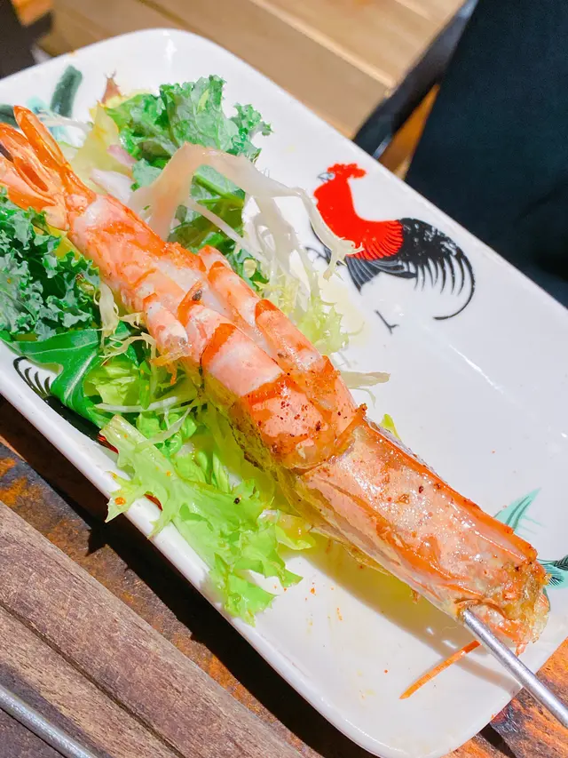串燒叫左一隻海虎蝦$48同一串雞翼(有3隻) $42