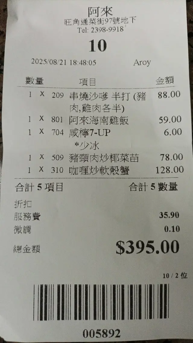 好耐冇食泰菜, 路經旺角不其然想起這間老店, 坐落先來一個海南雞飯50多元, 大大碟雞配油飯, 每次都必試他的串燒豬肉、雞肉大大串, 計起每支十鬆元, 簡直邊度都食唔到, 另一必食的是咖哩炒軟殼蟹, 香噴噴的咖哩伴鮮炸起的軟殼蟹, 簡直超正, 每餐都要叫返啲菜, 椰菜苗是我食泰國菜的必選, 今次加埋豬頸肉炒又有另一番味, 飲品當然就是冰凍咸檸七, 兩人一頓豐富的晚餐, 也不過三百多元, 在旺角食到這麼地道的泰國菜, 似乎別無他選。