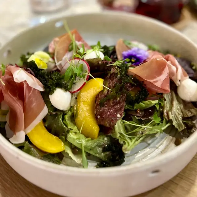 蜜桃巴馬火腿水牛芝士沙律伴蜜桃油香醋汁✨
