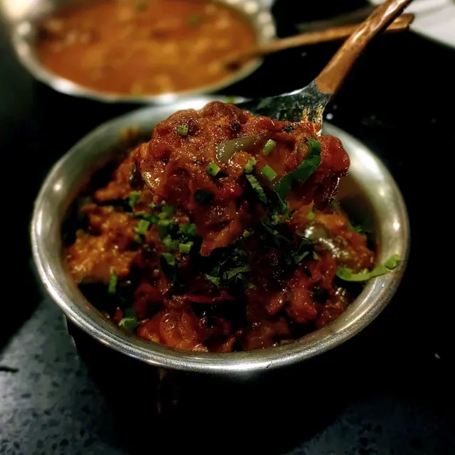 蔬菜類三選一就揀左馬沙拉茄子,賣相雖然係一團咁睇唔出係咩,但仔細望下其實見到切碎嘅茄子,仲有洋蔥、紅椒、蒜頭等,味道有著濃郁的蔬菜味,仲帶蒜香,上面灑的芫茜乾更係帶著香茜味😋