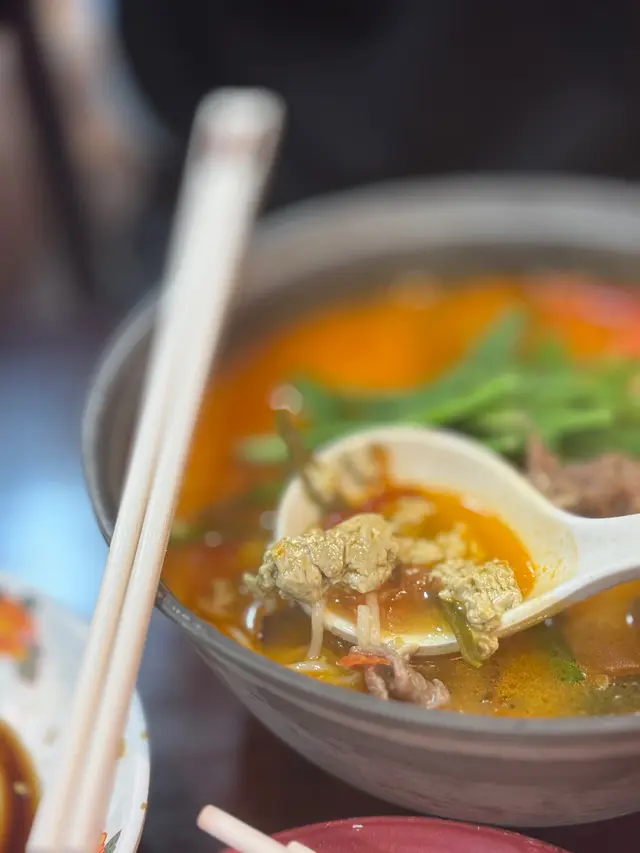 湯底酸辣又開胃🤤黑豆花並不是很多地方都有,所以今次見到即刻要點,特別之處當然係餐廳自家製,口感好綿,不錯!牛肉比平時更軟身,仲有海帶絲、木耳絲等配料,挺豐富。