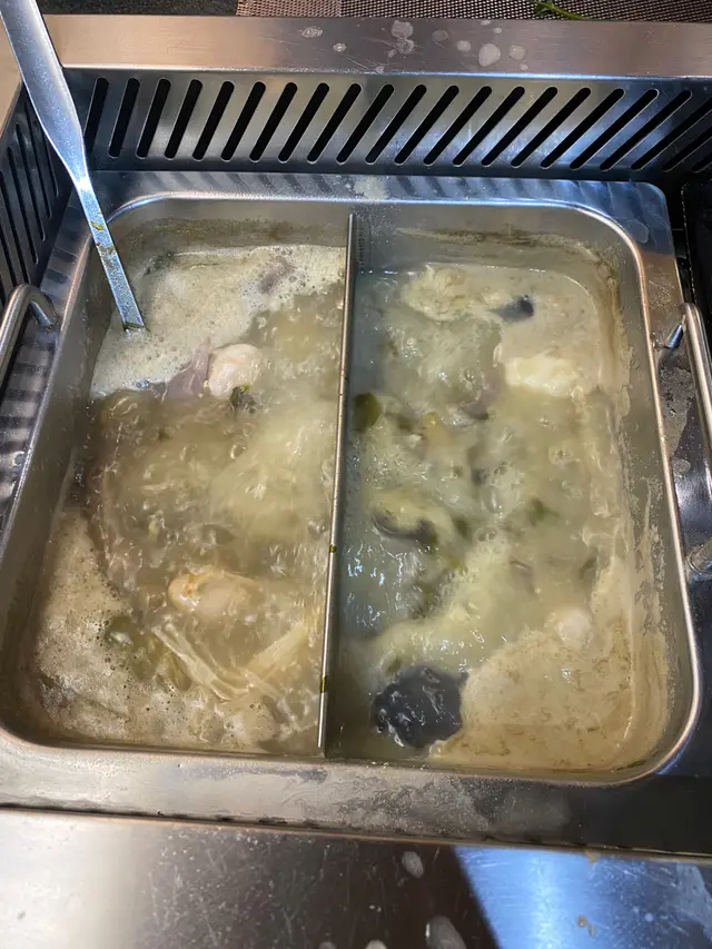 點咗個鴛鴦鍋,有胡椒豬肚湯同埋芫荽皮蛋湯。芫荽皮蛋湯就適合較為喜歡清淡嘅朋友,而我就喜歡豬肚湯多啲,再加埋入邊啲配菜,酸酸甜甜幾醒胃。