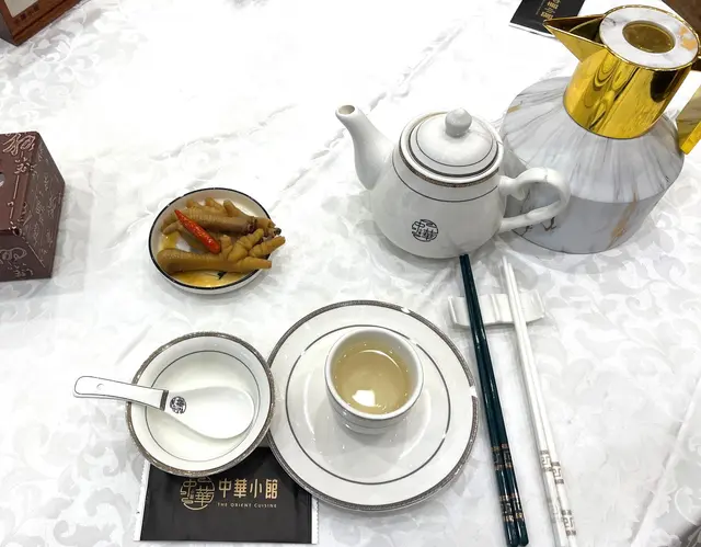服務員先開茶及送上小食, 茗茶每位 $20, 水滾茶靚.