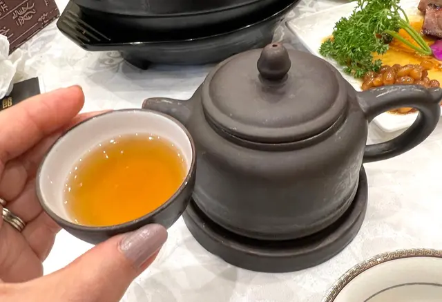 品茶般把湯倒進小杯子, 喝得有風味. 慢慢品嚐. 紫砂養生壺提倡慢飲細食, 古語說得好 "上臺可聞湯香味, 入口香純到腸來"
