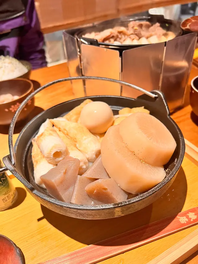 去太子經過間居酒屋見到寫住「被迫營業」好好笑🤣勁似等緊新年假嘅自己🙂↕️入去發現環境好靚,有一棵超巨型櫻花樹,大到好似真樹咁🙀食咗關東煮🍢 湯底清湯唔 greasy🤤麻糬豆皮包同獅子狗吸曬啲湯真係好好食🥹加埋天氣咁凍,飲埋啲湯成個人暖笠笠😚壽喜燒牛肉鍋🍲牛肉份量超多,而且肉質都幾好,唔會好多根👍🏻 唔可以唔提燒魚干🐟,外脆內嫩,每啖都有鹹香味,簡直停唔落口😋仲有香印乳酸梳打,飲落去有啲清新,仲帶啲乳酸味🍇💚想健康啲可以飲凍金桔擰檬水果茶🍋酸酸甜甜仲有成500ml,啱晒邊傾計邊飲💕如果大家想有feel啲可以坐榻榻米茶桌,可以坐係櫻花樹下面😆另外居酒屋仲有好多扭蛋,大家有時間可以欣賞吓❤️