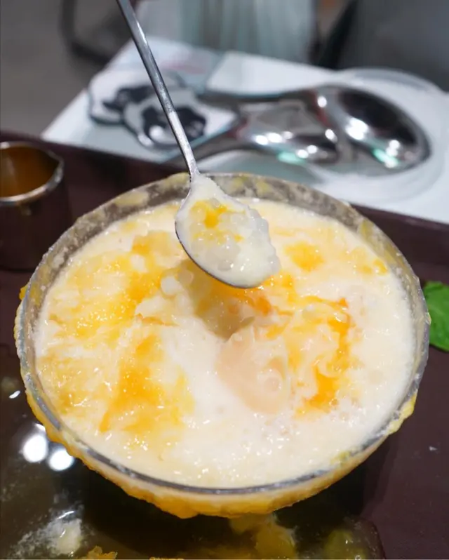 賣相巨型夠吸睛, 而且層次仲估佢唔到咁豐富😗最頂層白色既部分原來係豆腐味奶蓋, 食落味道都夠出! 再加埋d芒果粒同金箔, 增添左美感😍d冰本身都已經有少少芒果同椰汁香味, 食落都易溶係口, 但如果可以再碎d綿d, 入口即溶個口感相信會感受更深🙂另外仲可以自行淋上提供既芒果汁🥭