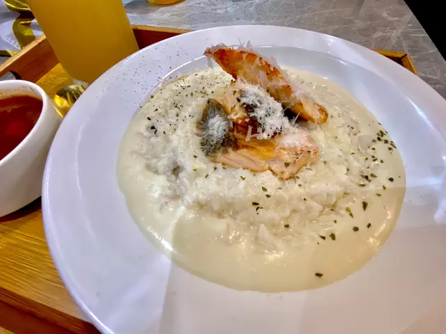 北海道奶油野菌意大利飯配香煎三文魚🍽️