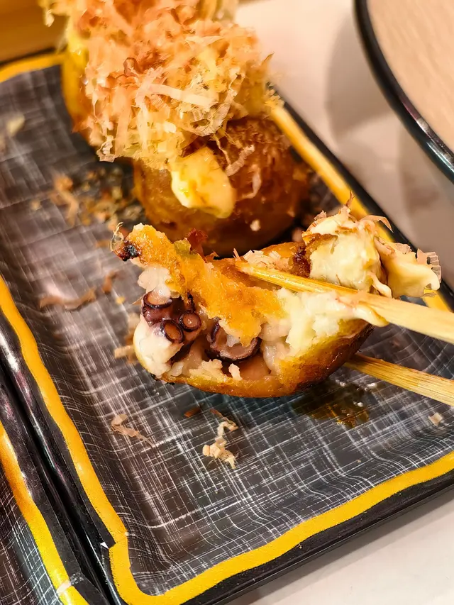 雖然是炸的,但小丸子比想像中的要足料,每粒都有2—3粒大大粒的章魚肉,口感爽滑,外脆內軟的。