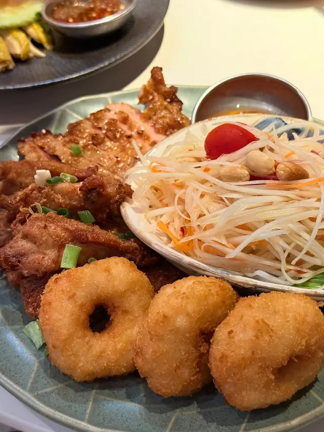 小食拼盤都好食,最鍾意蝦餅同埋豬頸肉👍👍👍 伴碟有個秘製醬汁,惹味得來唔會好辣。
