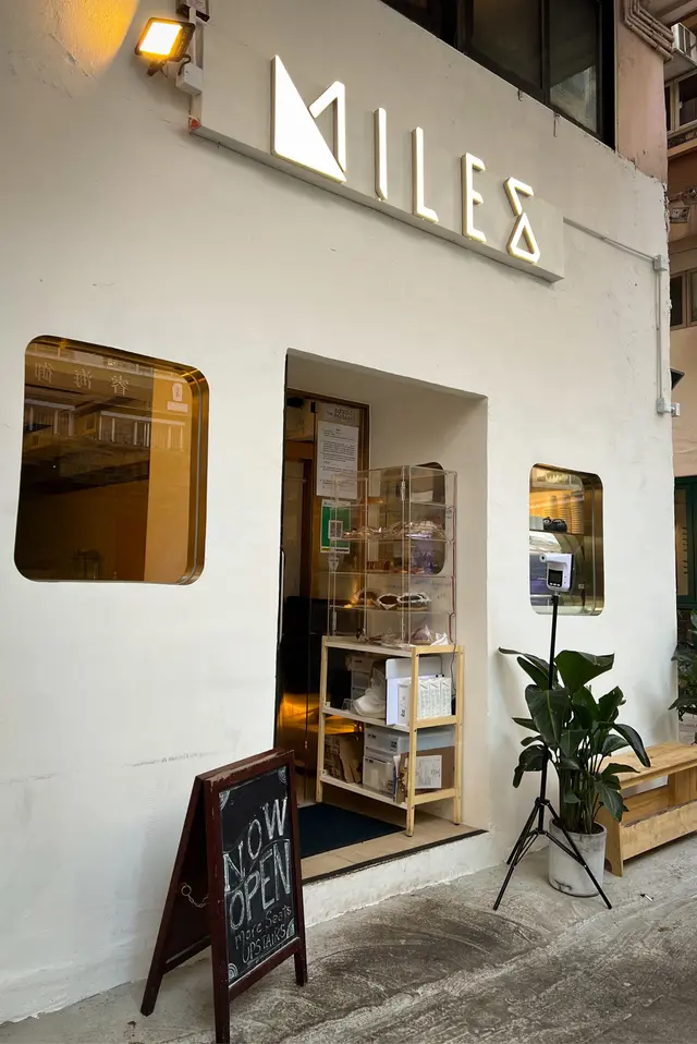 Miles 沒有很吸引眼球的門面和裝修,相反地,門面相對簡約,內裡有一張長長的木椅,襯以米面色的牆身,簡單舒適。以它的窗口、內裡的餐車和名字估計,應該是以機倉為設計理念。(一直以為 Miles 只有地下的少量坐位,但後來才知好像是有上層的,好像是 😜。)