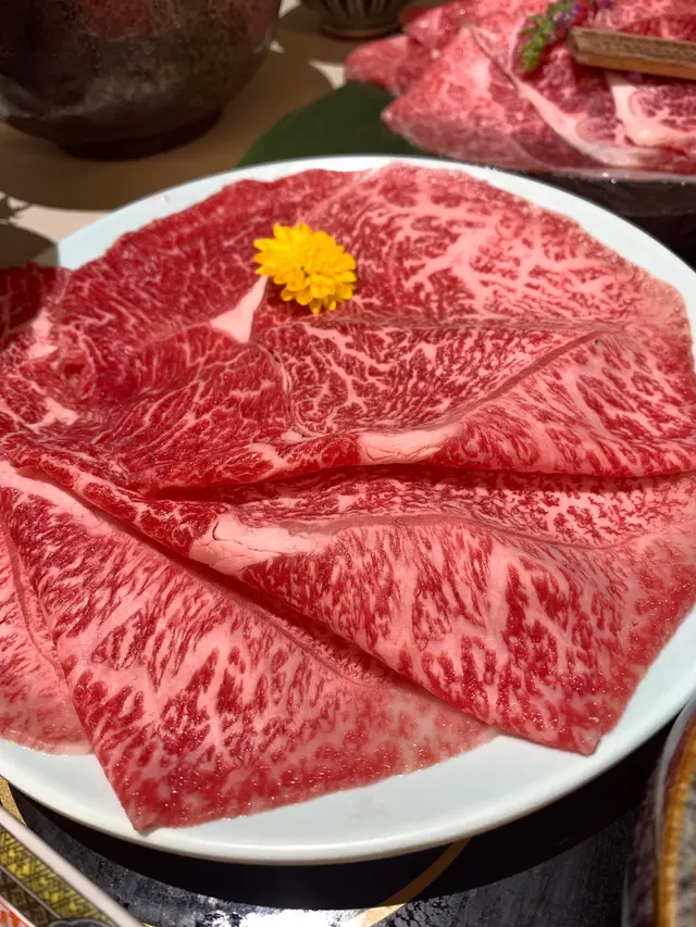 壽喜燒湯底個人覺得幾出色,因為唔太甜太重口味,唔使驚一邊食一邊要狂飲水解油膩。個日本黑毛和牛估唔到有6,7塊而且都幾啱我口味,油脂估3成,唔怕食2,3塊就極飽肚,可以慢慢享受。相反本延特選黑毛和牛,雖然無咁多塊,但就好大塊,肉質來講都係日本黑毛和牛比較滑身啲。