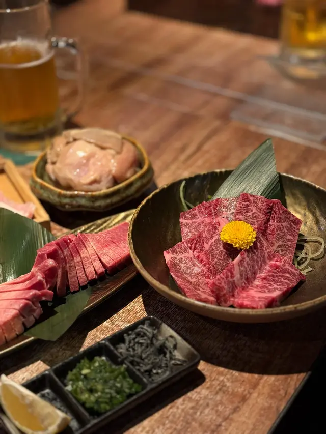 我朋友好鍾意食豬同雞, 呢度除咗和牛之外, 其他種類嘅肉都相當唔錯, 非常新鮮, 同埋醃肉醃得好入味, 就算有人唔食牛嚟到都唔怕冇嘢食🫢舖頭牆壁仲黐滿晒和牛入貨嘅標籤, 真正從日本直送過嚟, 食得安心又開心