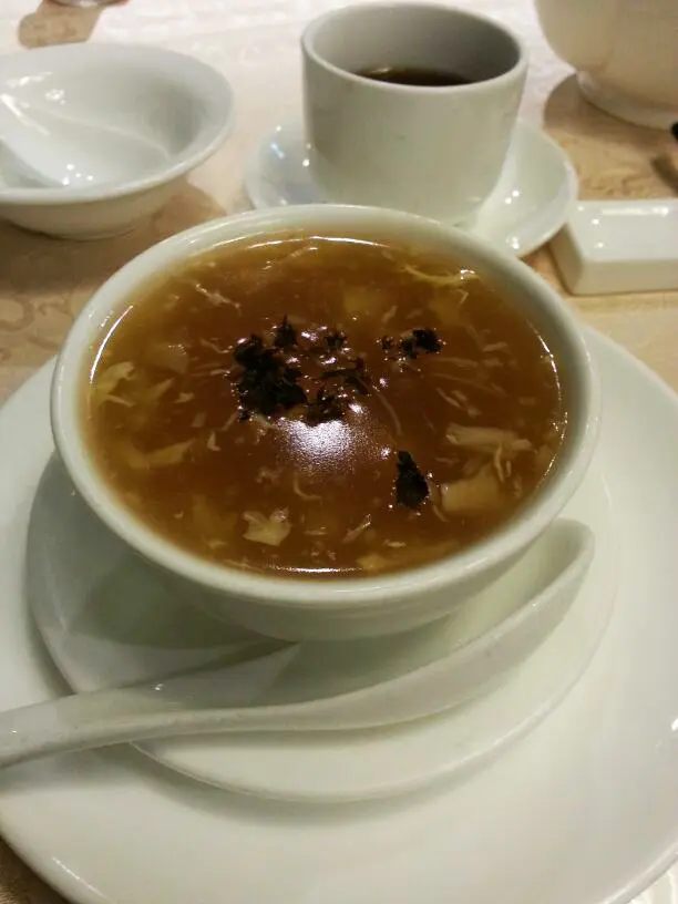 先黎瑤柱松茸桂花羮,味道一般,冇乜特別。