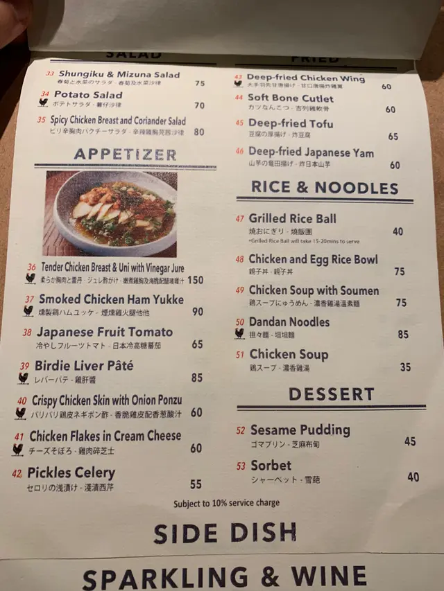 Birdie的定價偏貴,當然好食就無問題,本來對這餐都滿有期望,但實情是過於吹捧,名不付實。餐牌上是一串的價錢,都有專登試招牌推介的款式。某些串燒不過不失,但某些則大感失望。