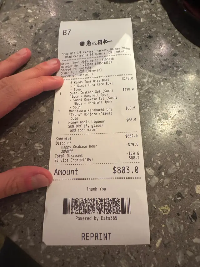 廚師發辦10件壽司盛 gerrard0012Level 42025-10-2846 views Follow 七たて理念,以合理價格提供日本空運直送快樂啤酒節慶典,熱情氣氛,環境舒適,裝飾有日本風格,熱鬧氣氛!選擇多,特色滿滿,日本之風味廚師特選壽司十貫壽司,一款手卷,十貫壽司選擇多而即點即做,時令之美味,蟹肉,油甘魚,鰹魚,大蝦,海膽軍艦等,刺身新鮮,拖羅蓉手卷鮮甜吞拿魚腩飯食材新鮮,手藝精湛,亮點🌟香濃之醋飯非常彈牙紀州菠蘿梅酒菠蘿味濃,梅酒清香清酒在日本餐廳 飲清酒是必需在中環街市裹 有時會有特別表演啊The above review is the personal opinion of a user which does not represent OpenRice's point of view.LikeShare廚師發辦10件壽司盛 魚がし日本一 (中環街市) https://s.openrice.com/QrKT0Fzsl00Report Post Ratings5Taste5Decor5Service5Hygiene5ValueDining MethodDine In