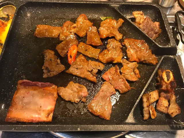 將燒好左嘅肉加kimchi 同大醬用菜包住一齊食!係有個韓國friend教我咁食!味道好配合!
