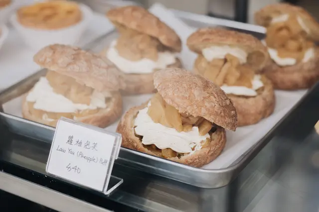裡面的焦糖流心味道上意外地跟蛋撻很搭配~ 不是很膩(๑´ސު`๑)