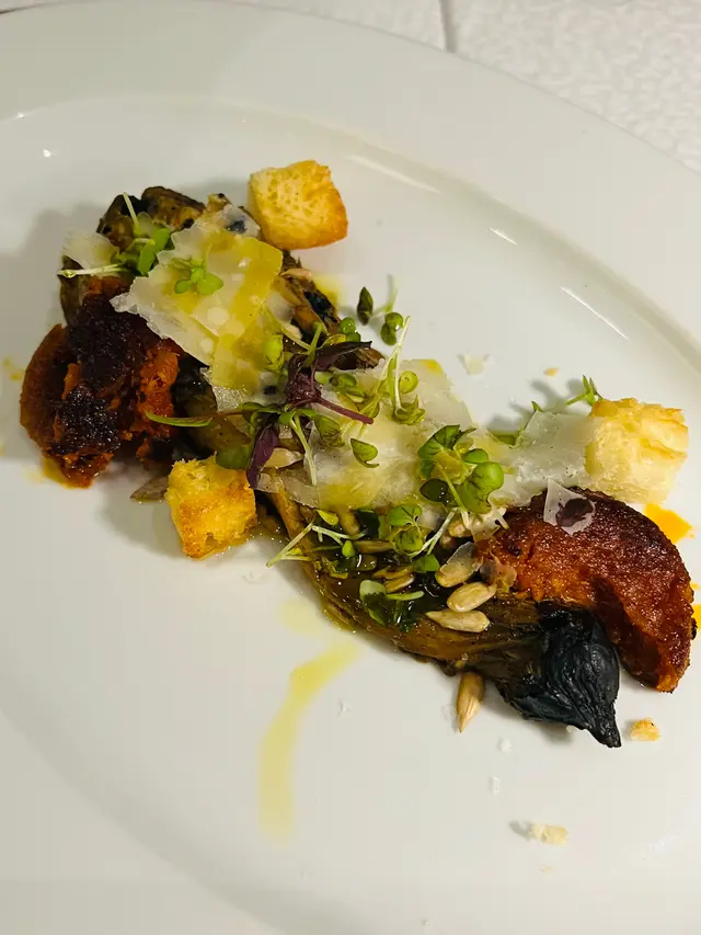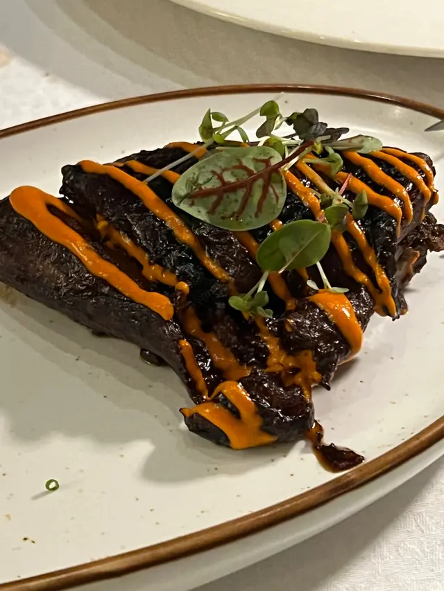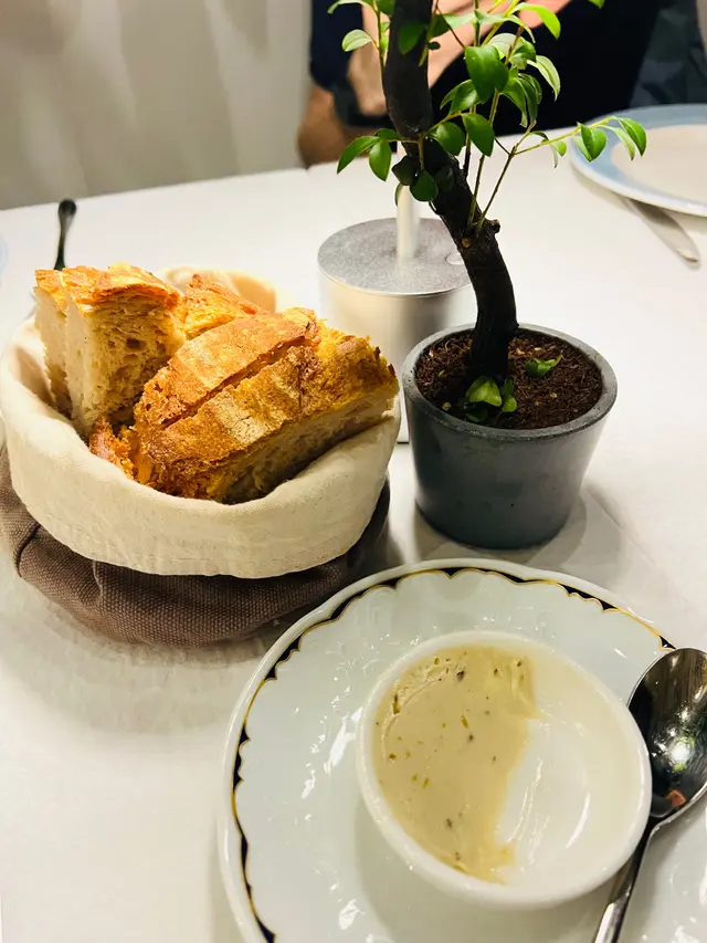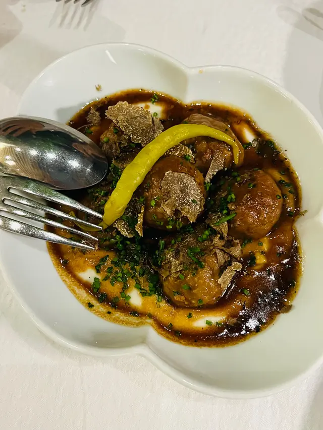 五道頭盤, 當中有兩道是素食, 分別是凱撒沙律和矮瓜, 矮瓜是來自西班牙的梅西亞, 比平時吃開的厚身但口感更細徵, 用上羊奶芝士和巴馬臣芝士, 甜中帶微鹹和乳香, 相當不錯. 三道肉類中的皮丸加上黑松露, 更為奢華而味道相對霸道. 反而另外兩道魚是沙甸魚和吞拿魚片, 用上醋汁及檸汁豉油, 味道配搭更好吃起來更舒服.