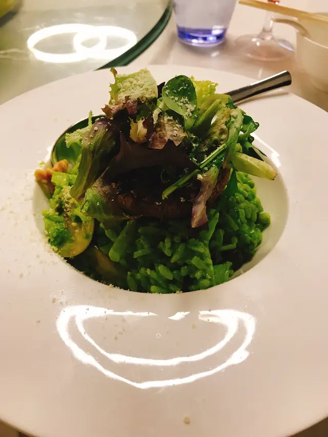 成個碟睇落去都係翠綠色既,又係好fresh,意大利飯煮得剛剛好~有口感~好香忌廉味,每一啖都滑一滑。飯入面有好多不同類型既菇類,鍾意食菇既不妨一試~大啡菇都烤得好好食~保持菇內既水份~多汁~
