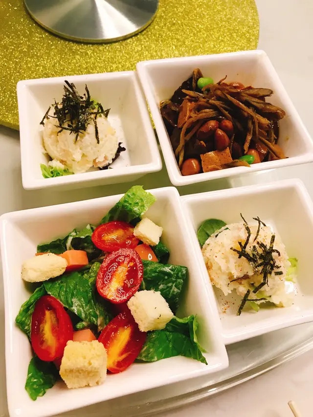 個人最鍾意就係-滷水花菇毛豆百頁豆腐伴醬燒牛蒡,滷水味道有d台灣既感覺,偏甜個人好鍾意,我自己食曬呢碟小食呀!haha~