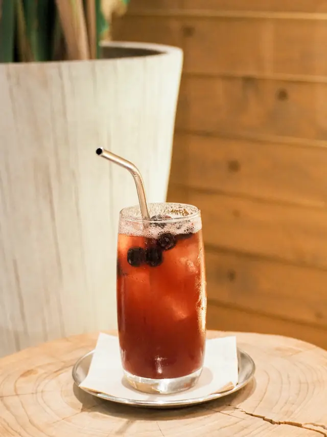 平常點特飲都有種買彩票的感覺 怕點到那種藥水味道的 這次選的這杯野莓梳打幸好沒踩雷 顏色偏深 如果不是加了幾顆藍莓 真的有點像紅酒呢 哈哈 味道蠻清新的 不會太甜