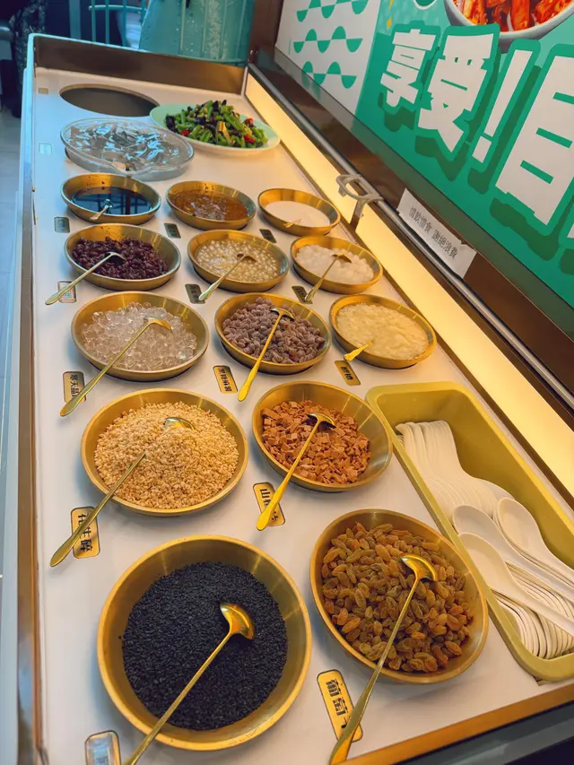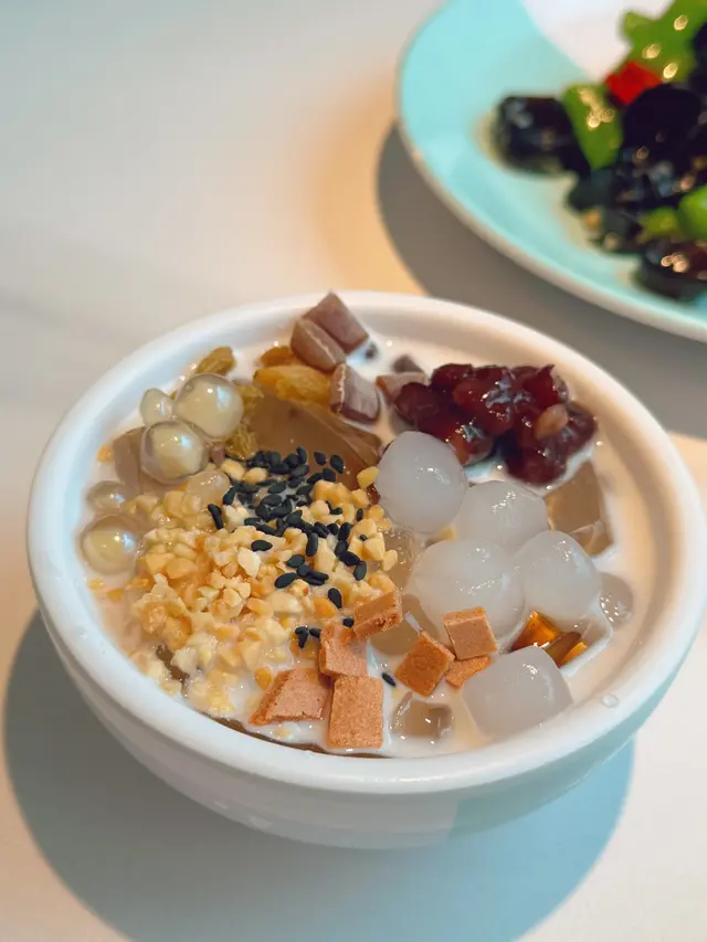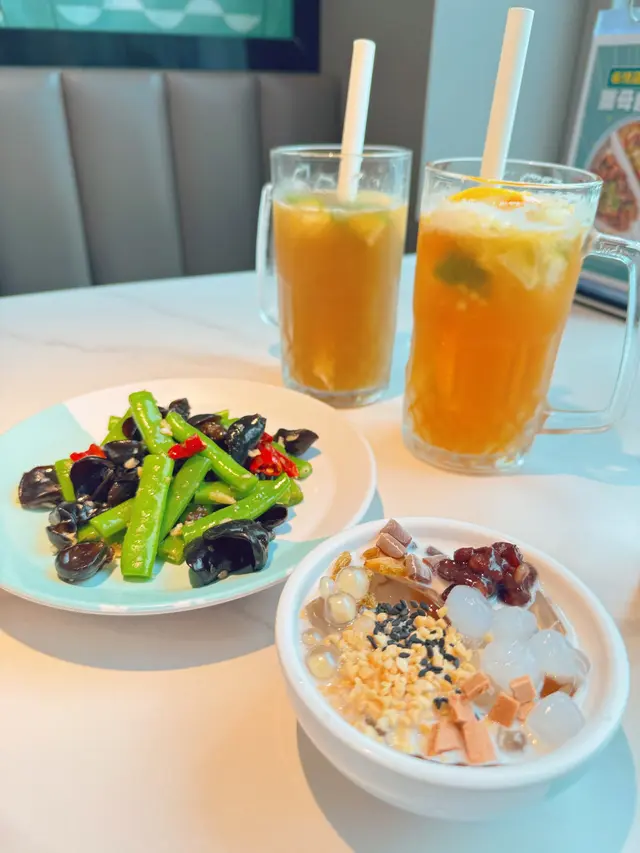 和茉莉香橙🍊 喺呢個炎炎嘅夏天,真係透心涼呀!最後只需要每位加12元無限享用自助區,除咗有涼拌小菜之外,仲有我最鍾意食嘅冰粉,有超過十多款材料選擇,去炮製自己喜歡獨一無二的冰粉😋