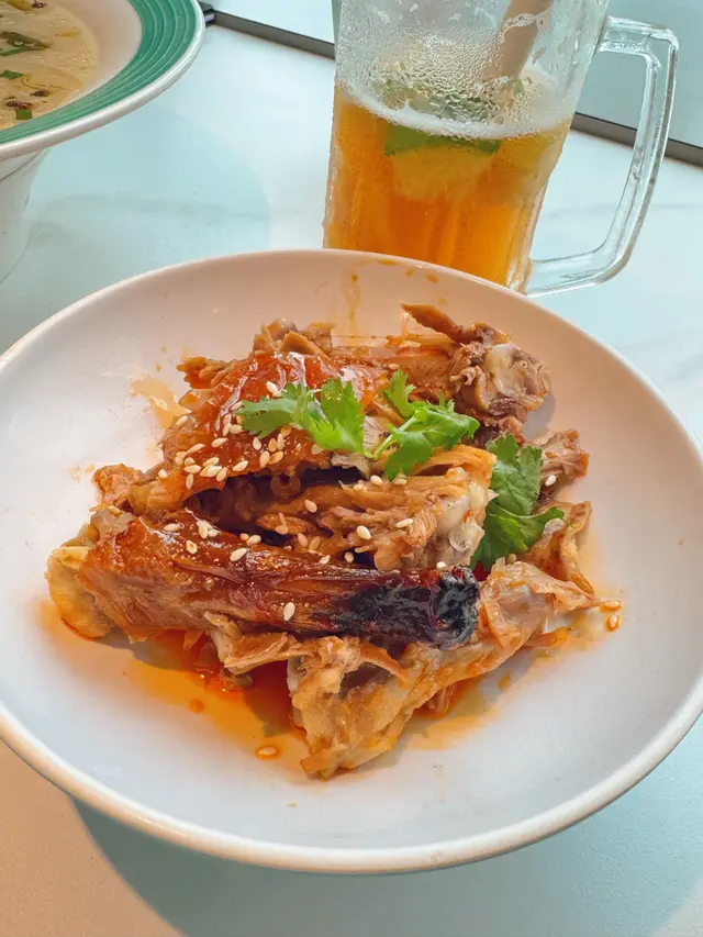 而鴨架就用川味嘅方法去煮,鴨架麻辣麻辣好入味。我哋再飲番杯爆打青瓜🥒檸檬🍋茶