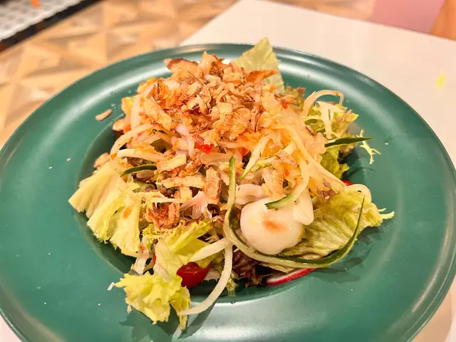 之後就係泰式柚子墨魚仔沙律,佢個汁酸酸甜甜,配埋洋蔥,感覺清新,墨魚仔有4隻,隻隻都好彈牙