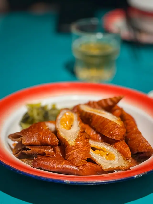 而比較少見的【懷舊炸大腸】內部清潔得很乾淨,也炸得酥香,一口炸物一口啤酒,絕配也!
