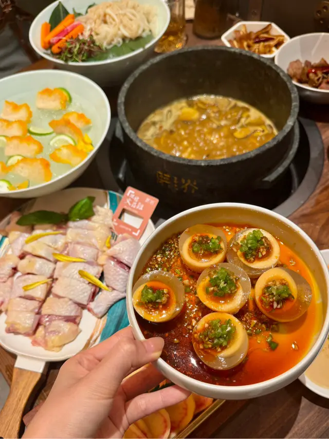 一鍋熱騰騰嘅湯底,野生菌香氣爆棚!土雞肉質鮮嫩,只要淥一分鐘就食得,湯頭濃而不膩,飲落暖胃又滋補!