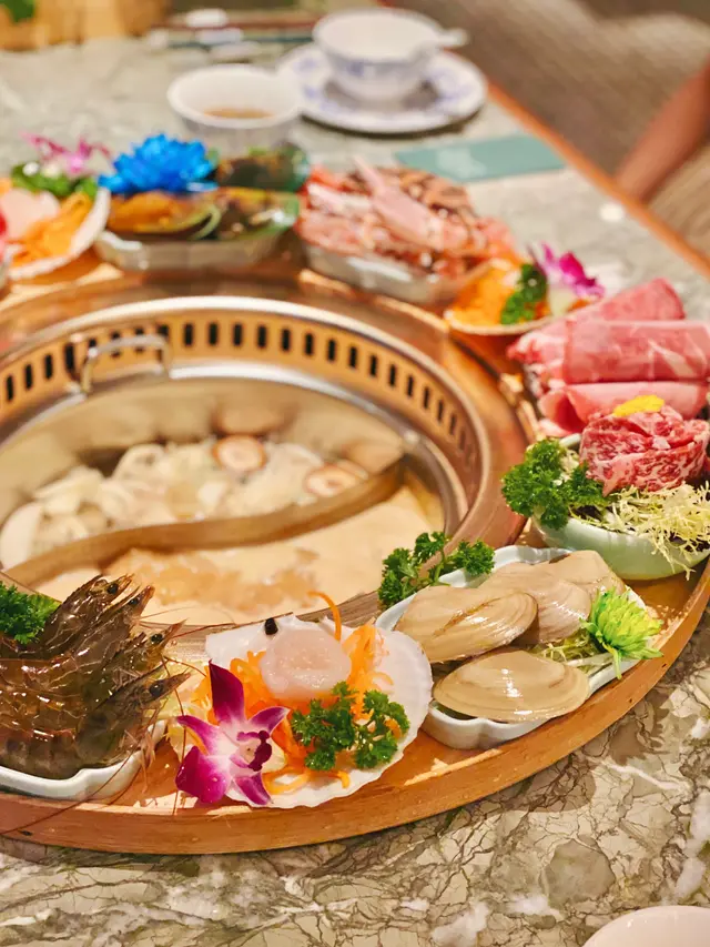 見好多人都叫左肉拼盤(香江拼),不過我最近食太多肉,所以揀左又有海鮮又有肉嘅斐沙圈~ 好彩揀左呢個,因爲個人覺得佢嘅肉一般,反而海鮮全部好新鮮,又夠大隻,d青口新鮮到隻筷子比佢夾住左,好好笑!湯底揀左沙爹同清湯嘅鴛鴦,海鮮放落清湯就岩岩好,可以食到海鮮嘅鮮味,沙爹湯底都幾好味,不過就比較容易痴底,食個陣要睇住小心燶底
