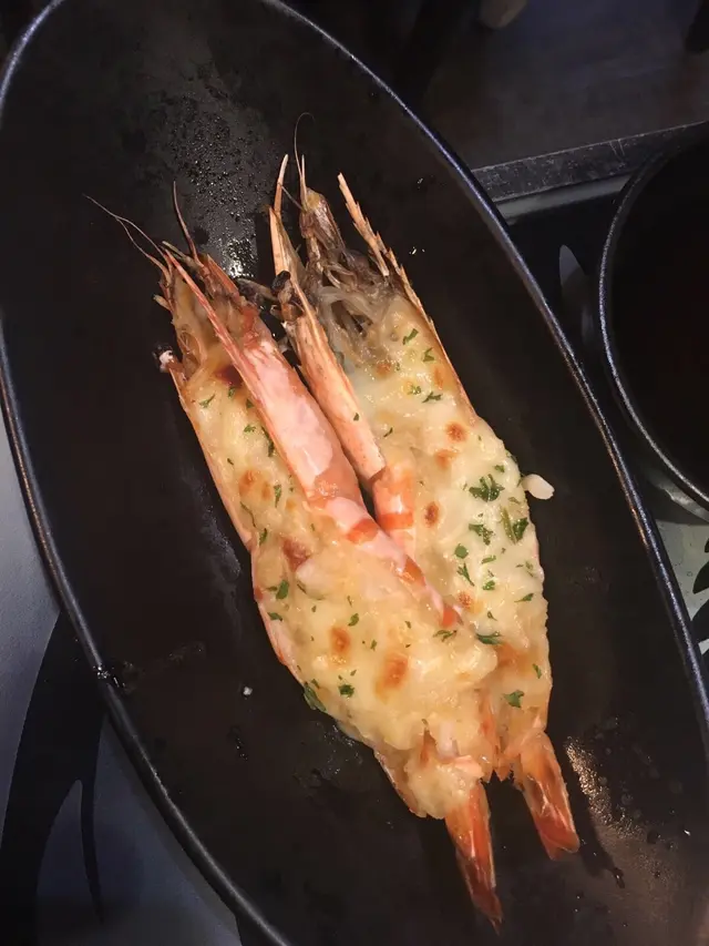 焗蝦面頭有蒜蓉同芝士,蝦好有鮮味,而且調味啱啱好,唔會過鹹,而且隻蝦覺得啱啱好唔會太老