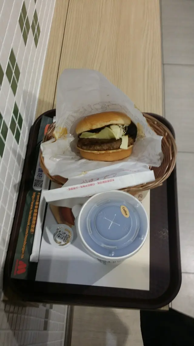 我食了一個「法式和牛漢堡」加上一件「摩斯脆雞」,再加一杯「凍咖啡」,「Mis Bueger Express」已經收了我,足足港幣五十七元的偏貴價錢。