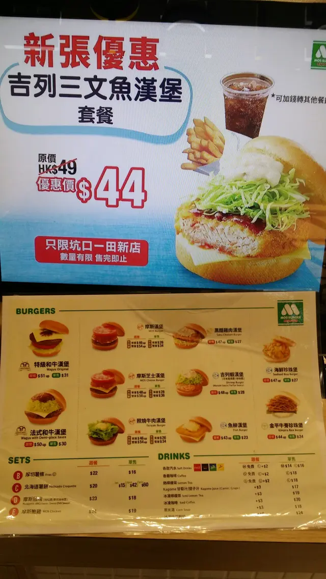 不過,還是那句「一分錢一分貨」,坑口分店「Mos Burger Express」雖然從一樓位置,搬到樓上「一田超市」的門口位置,但是「Mos Burger Express」的實際價錢,還是一如既往的昂貴。