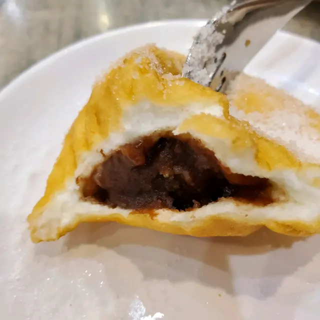 即炸熱辣辣,自己沾砂糖,喜歡甜的我沾左好多砂糖,很香甜美味。口感輕盈似食空氣,但咬落有微微回彈,內餡有甜潤的細滑豆沙餡,好完美的一餐晚飯。