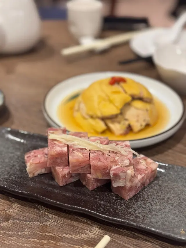 冷盤開場,賣相好看,像果凍一樣晶瑩透亮。味道清爽不膩,膠質豐富但不會黏嘴,咬下去口感剛剛好,有點像高級版的肉凍,喜歡清淡系的會滿愛。