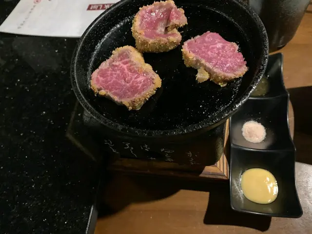 見好多人推介安格斯吉列牛,所以二話不說就叫咗份,佢好快就準備好啲燒灼器具同埋吉列牛俾我哋,賣相真係一流!外皮同肉質都好有層次,真心想唔燒就咁食!慢火燒嘅時候見住佢中間嘅部份慢慢由紅變深色,香氣四溢,急不及待食啦,嘩無得彈,肉質鮮嫩,鹹度適中,份量都唔少,當然多幾塊更好!總之嚟呢度一定要食!