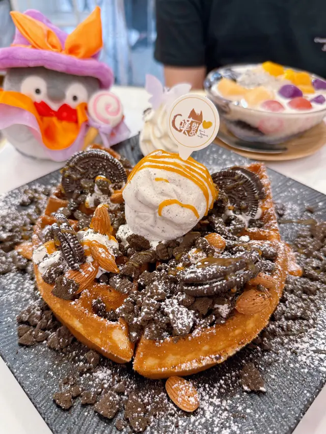 「岩鹽拖肥Oreo鮮忌廉窩夫」則是另一種享受——窩夫外脆內軟,拖肥醬濃郁黏滑,加上岩鹽帶出的微鹹層次,甜味更突出,配上香滑鮮忌廉和碎Oreo,口感豐富得令人回味😘