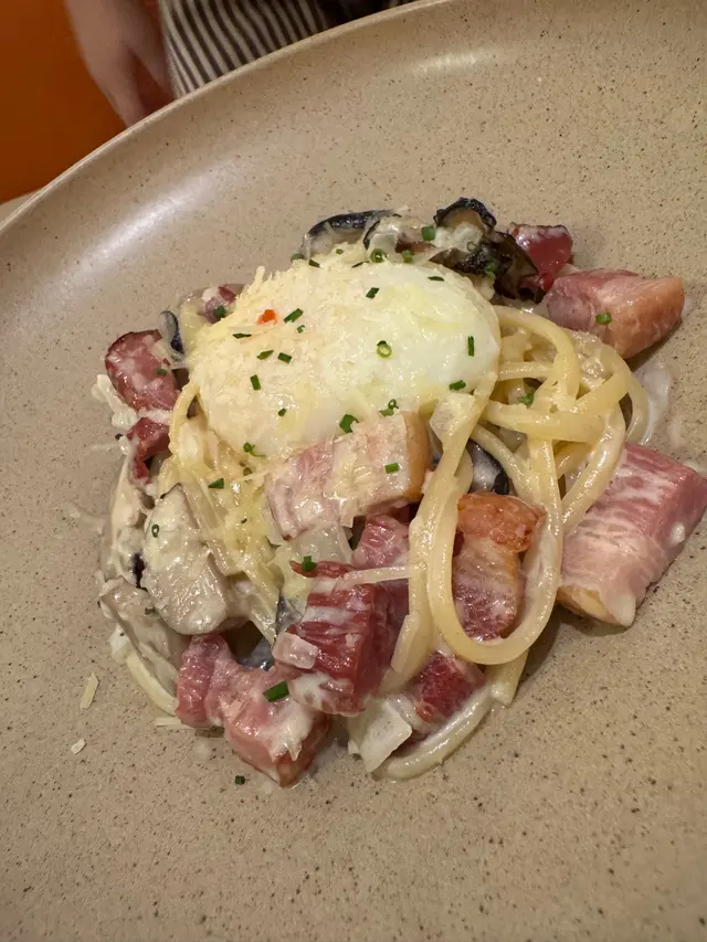 溫泉蛋煙豬腩肉卡邦尼扁義大利麵🍝