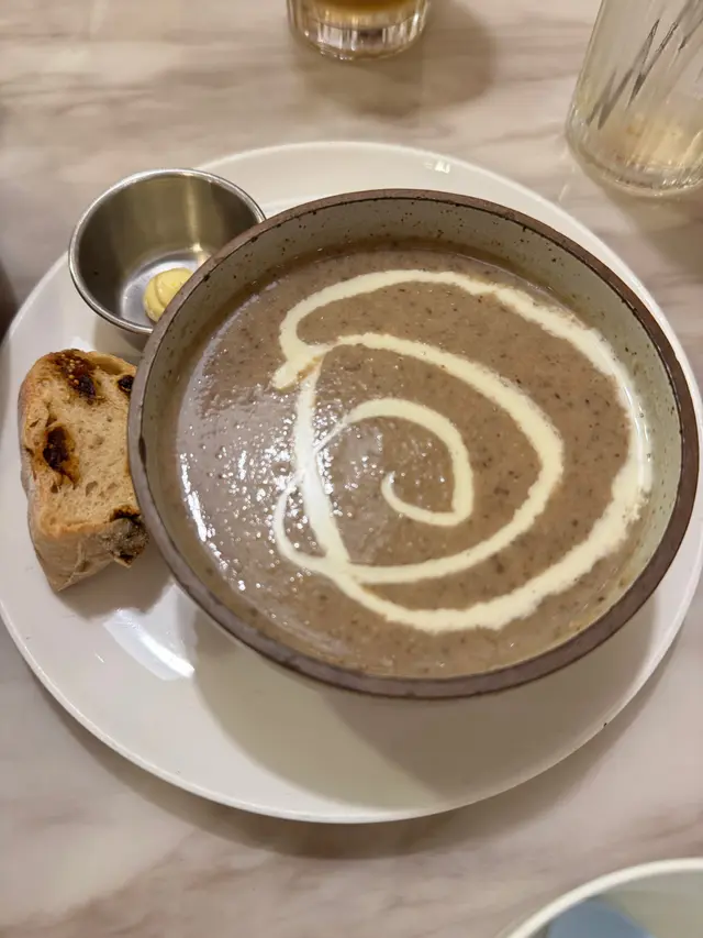 濃郁的磨菇湯,香氣四溢,適合用來開胃,與其他菜品相得益彰。