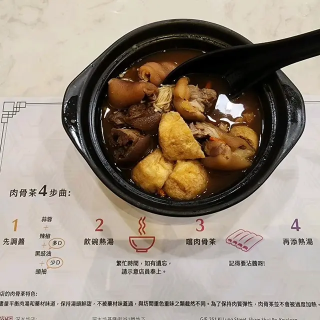 食肉骨茶要跟足佢嘅步驟咁就最好食!有四部曲,每張枱都有紙清晰指示。