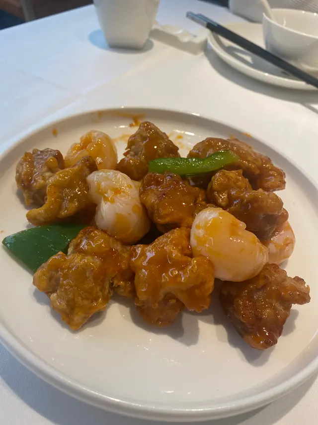 呢款小菜做法有啲似咕嚕肉,豚肉全是瘦肉,沒有肥肉,外層炸得薄脆,釀入酸甜醬非常開胃,荔枝肉大粒舊鮮甜非常配合