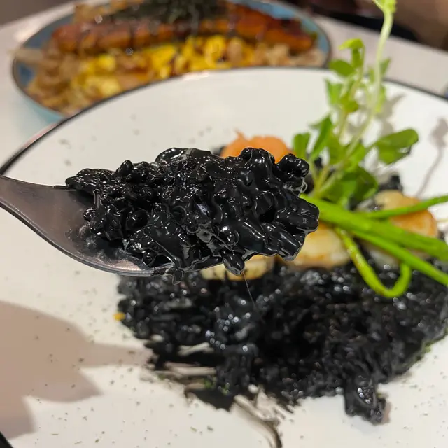 🔸墨汁意大利飯配北海道刺身帶子及煙三文魚 $138