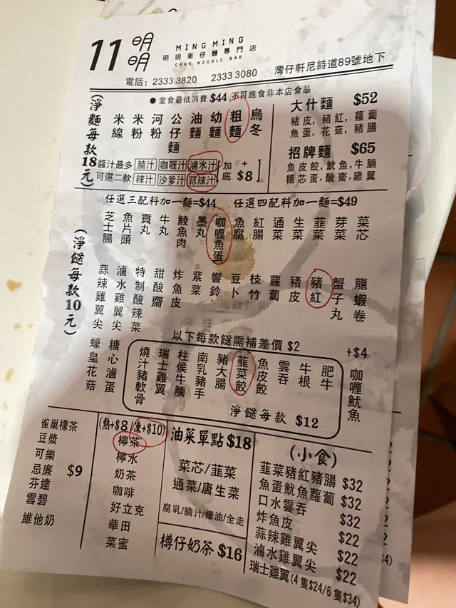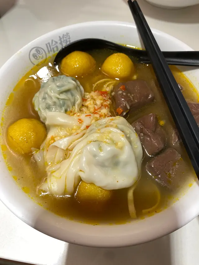 今日試咗碗自選車仔麵,餸菜揀咗咖哩魚蛋、豬皮、豬紅、糖心蛋同韭菜餃。重點推薦滷水豬紅和豬皮,呢兩樣絕對必食!麵底揀咗粗麵,油麵,麵質爽身唔會過淋。醬汁可自選兩款,極力推薦滷水汁+蒜辣汁:滷水汁甘香帶甜,蒜辣汁蒜味重但不會太辣,雙汁混合後濃郁又醒胃,重口味,不過食完會有啲口渴。整體份量ok~