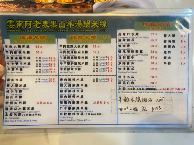 所用嘅雲南黑山羊肉肥瘦均勻軟嫩唔痴牙,肉嘅份量亦都好多,酸辣湯底另加$1,米線嘅軟硬程度啱啱好,加埋獨特嘅配料一食即刻愛上😋