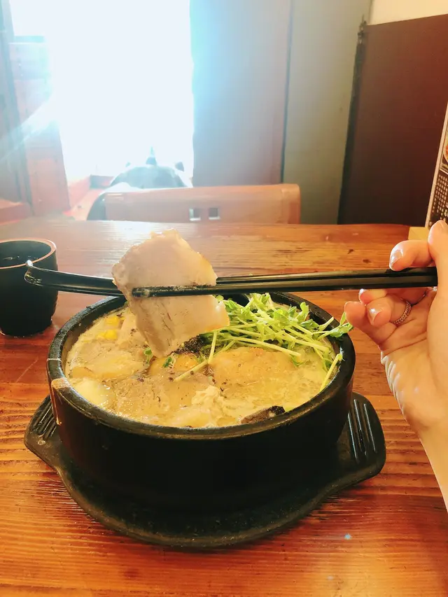 不一會,店員熟練地端上我的厚切豚肉手打烏冬!厚厚半肥豚肉鋪到成個石鍋滿晒,睇見都流晒口水。香菌濃湯奶白色的湯底非常香滑,上菜時還是滾泡泡的。吃時要小心避免觸碰鍋邊啊。豚肉非常厚身,脂肪入口即溶。即使厚切,肉質色澤也煮得一致均勻,肉嫩一絲絲的散開。非常好食。一大羹的黑松露,我喜歡拌湯進食。每一件鮮冬菇都吸收了濃湯精華。手打烏冬一如以往出色,彈牙、軟滑。 每次都吃得津津樂道,一試難忘。