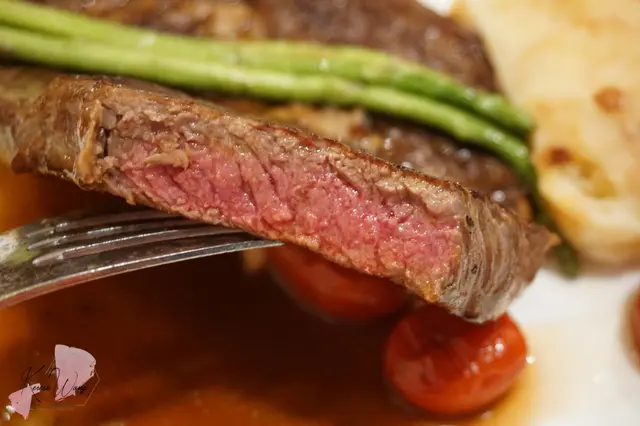 ORDER左5成熟, 切開中心位果然有些少血水滲出, keep到肉汁, 質地林, 表面有微微焦香